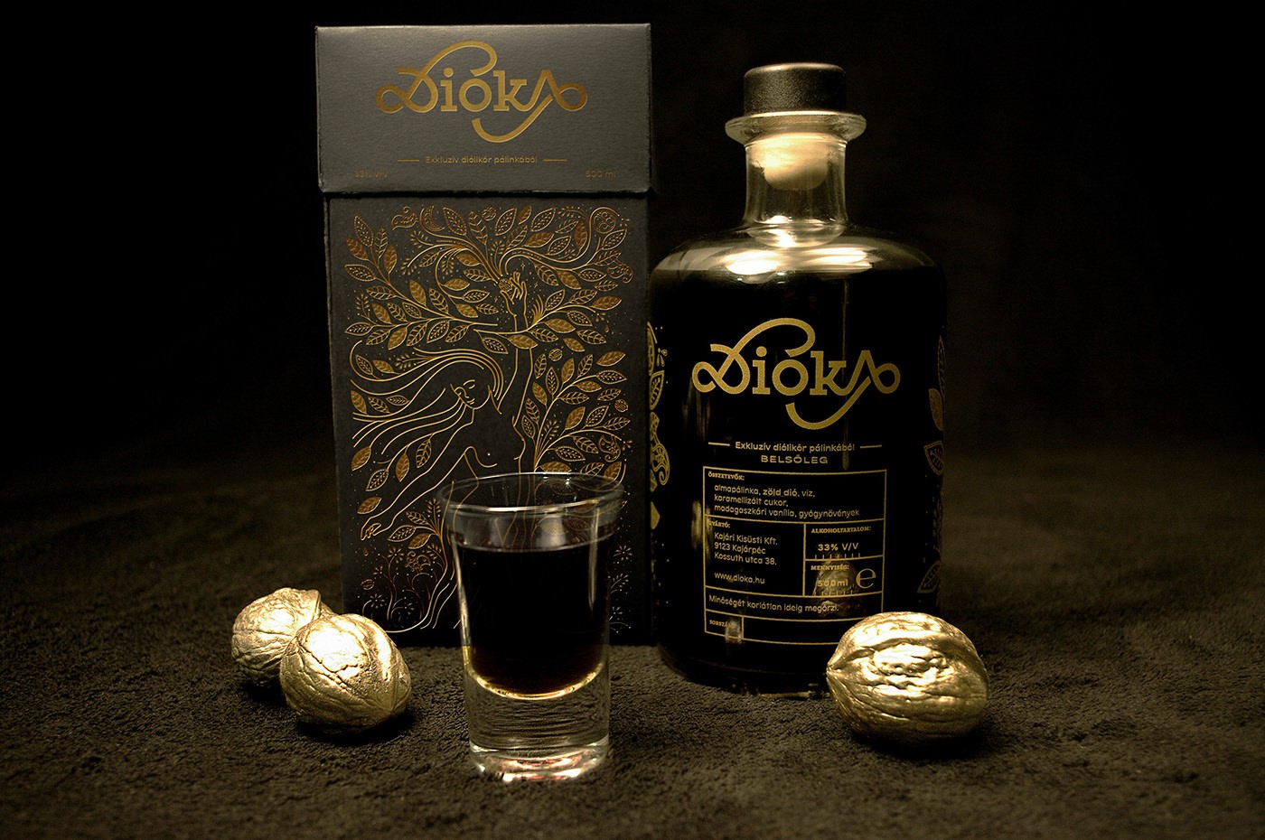 Dióka 的傳統(tǒng)匈牙利胡桃利口酒設(shè)計視覺識別和包裝。Dióka 在匈牙利語中的意思是小胡桃木。視覺概念基于一個關(guān)于綠核桃利口酒起源的虛構(gòu)故事。在設(shè)計過程中,傳統(tǒng)的匈牙利民間元素啟發(fā)了我。我用的是古典藥酒玻璃,因為核桃有傳說中的藥效。