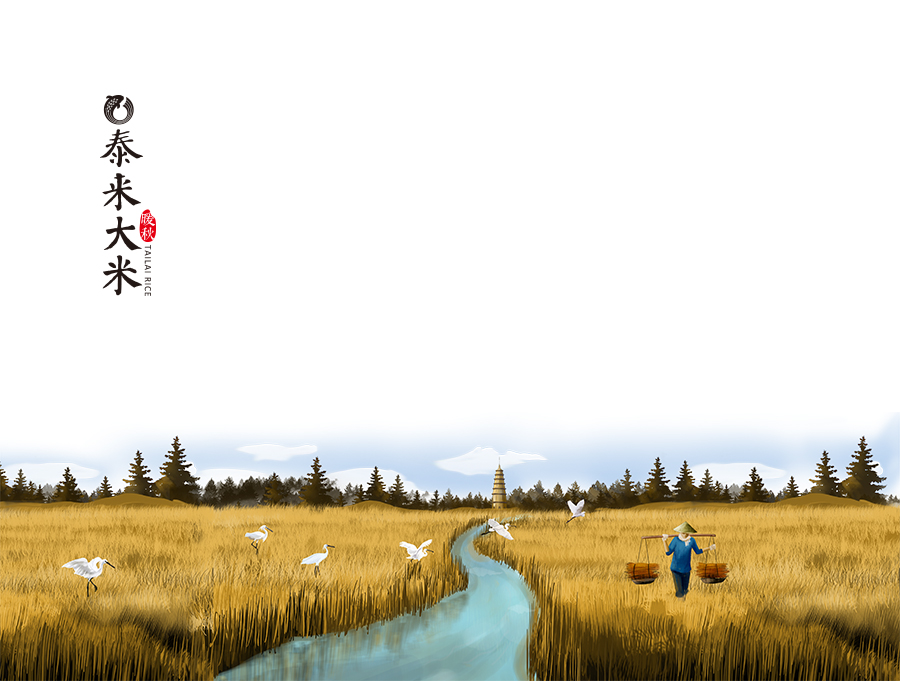 西林設(shè)計(jì)插畫師從暖秋的意象出發(fā),畫出溫暖的泰來,且稻田中的幾只白琵鷺,更突顯泰來的寧靜祥和。
