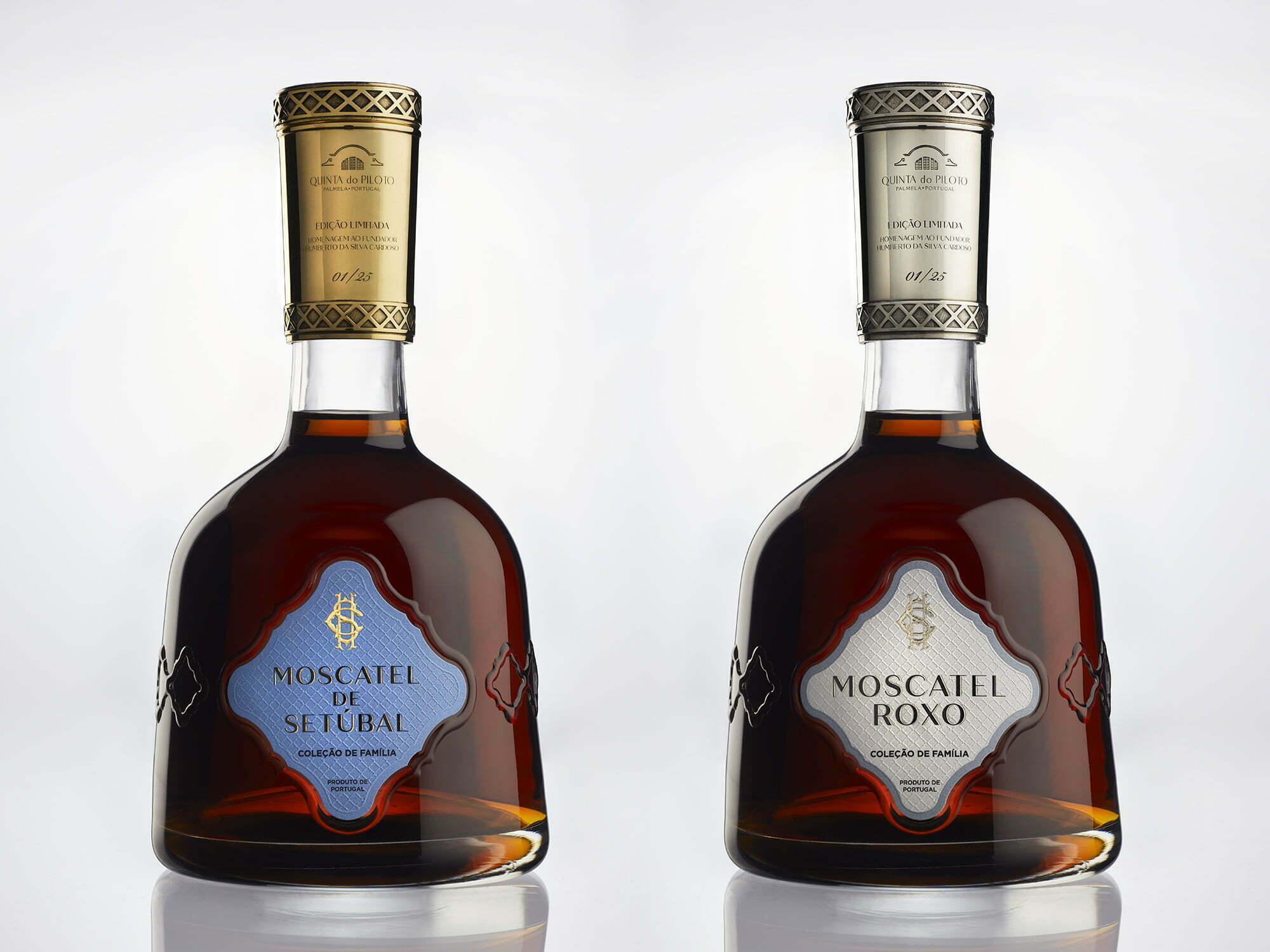 Quinta do Piloto Moscatel de Setúbal Family Collection and Quinta do Piloto Moscatel Roxo Family Collection are two rare Moscatéis from Quinta do Piloto, both signed and produced by the hands of Omdesign.