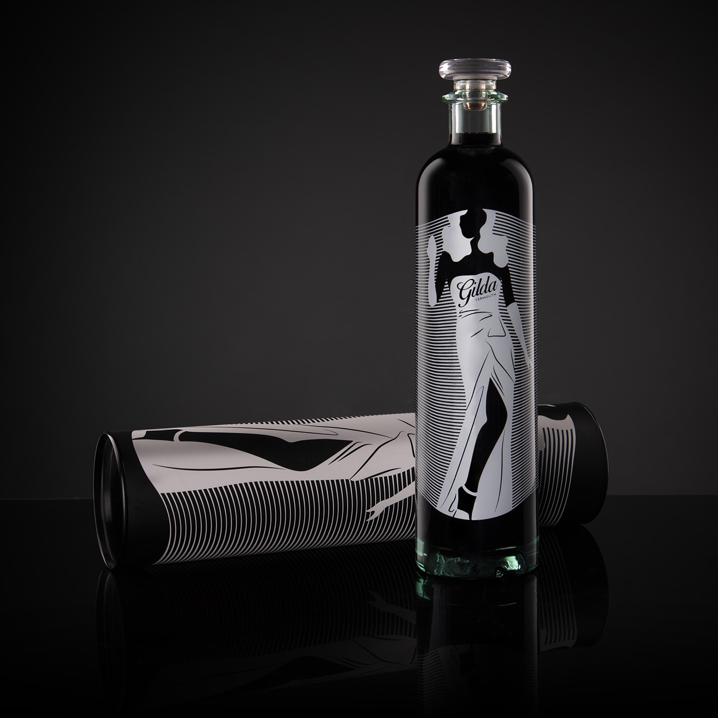 吉爾達(dá)是來自 Bodega Latarce 的新苦艾酒。她以麗塔海華絲主演的電影命名。設(shè)計(jì)靈感來自電影中主角的著名舞蹈,該舞蹈因誹謗而被許多國家禁止。為此,我們選擇了一個(gè)風(fēng)格化的瓶子,并絲網(wǎng)印刷了輪廓以及具有“莫爾”效果的線條,并賦予整體活力,因?yàn)楫?dāng)瓶子移動(dòng)時(shí),人物似乎也在移動(dòng)??喟朴邪咨姹?,設(shè)計(jì)相同,但采用黑色絲網(wǎng)印刷。為瓶身加冕,vinolok 瓶蓋與刻字一起使這款瓶身成為一款原創(chuàng)而優(yōu)雅的套裝。