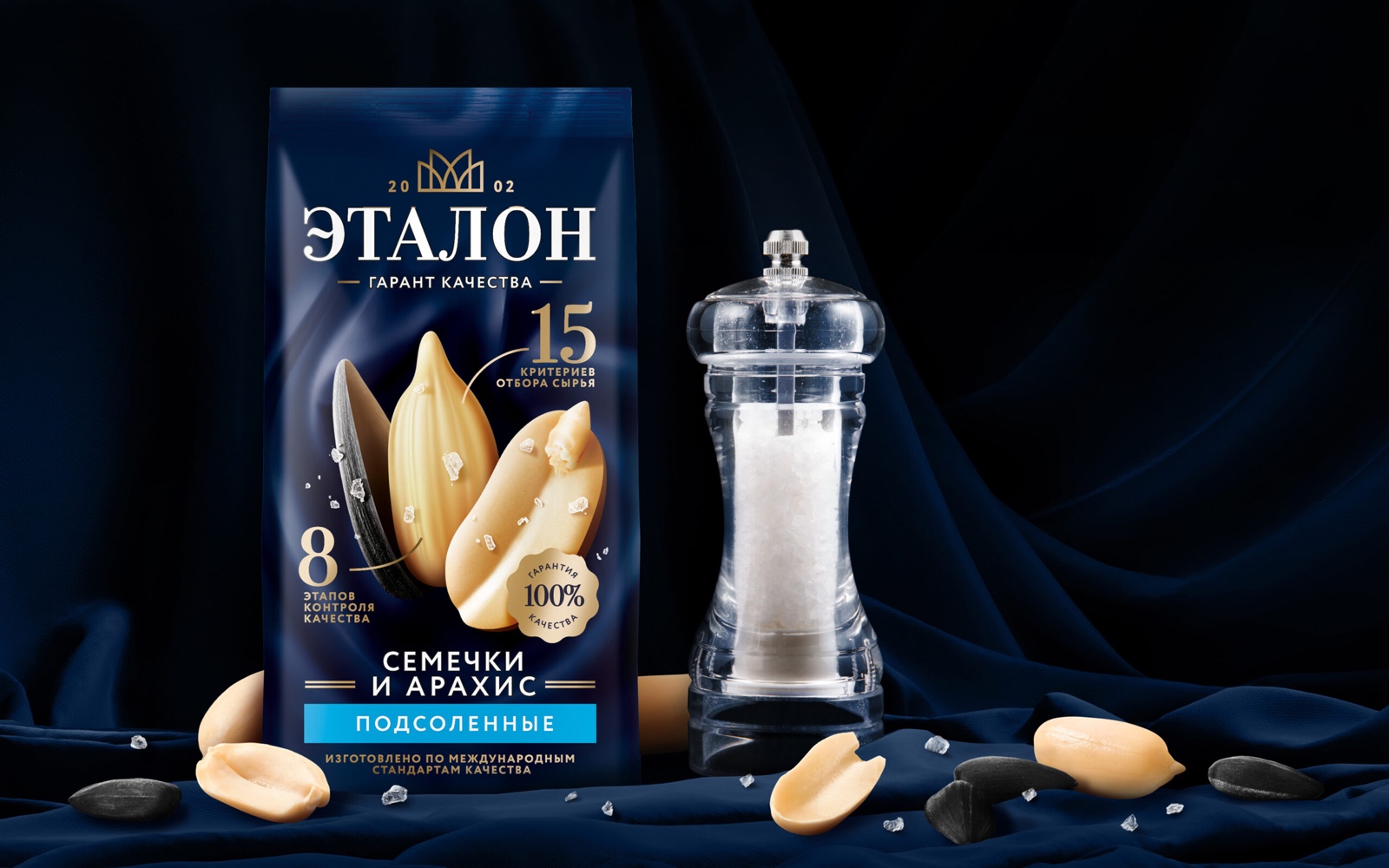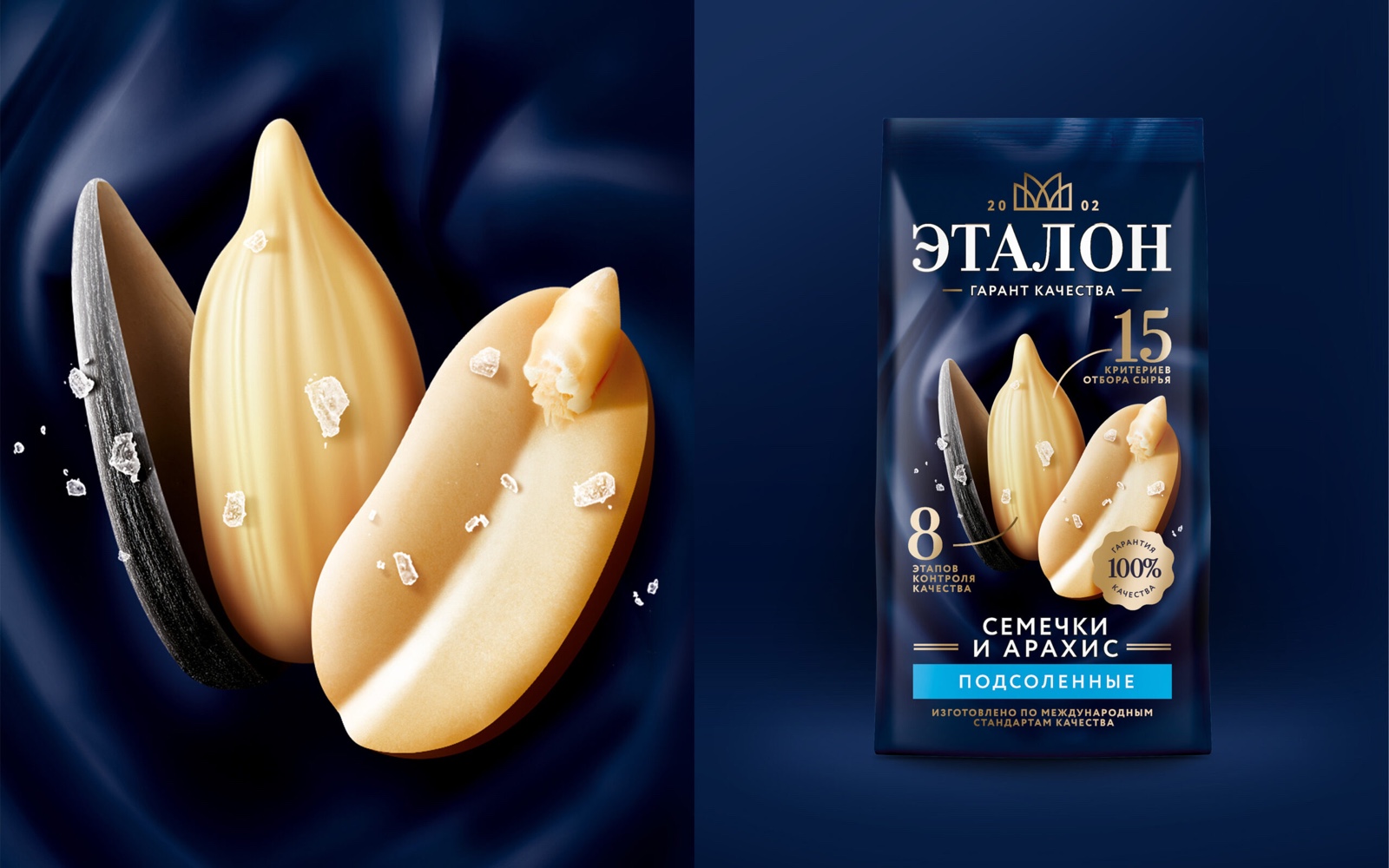 該項目的第一步是使用我們的三層效率方法進行設計審核。它指出了我們需要消除的缺點:模糊的食物區(qū),低對比度的標志,模糊的定位,各種元素的包裝超載。像“標準具”這樣一個雄心勃勃的名字基本上沒有得到任何支持,消費者不清楚為什么這個品牌是優(yōu)質的。對于標準具品牌,大口徑45+的種子從最好的糖果品種中選擇。擁有自己的原料基地和種植體系、生態(tài)清潔的種植區(qū)域、獨特的烘焙和鹽漬技術——這些優(yōu)勢沒有以任何方式透露。