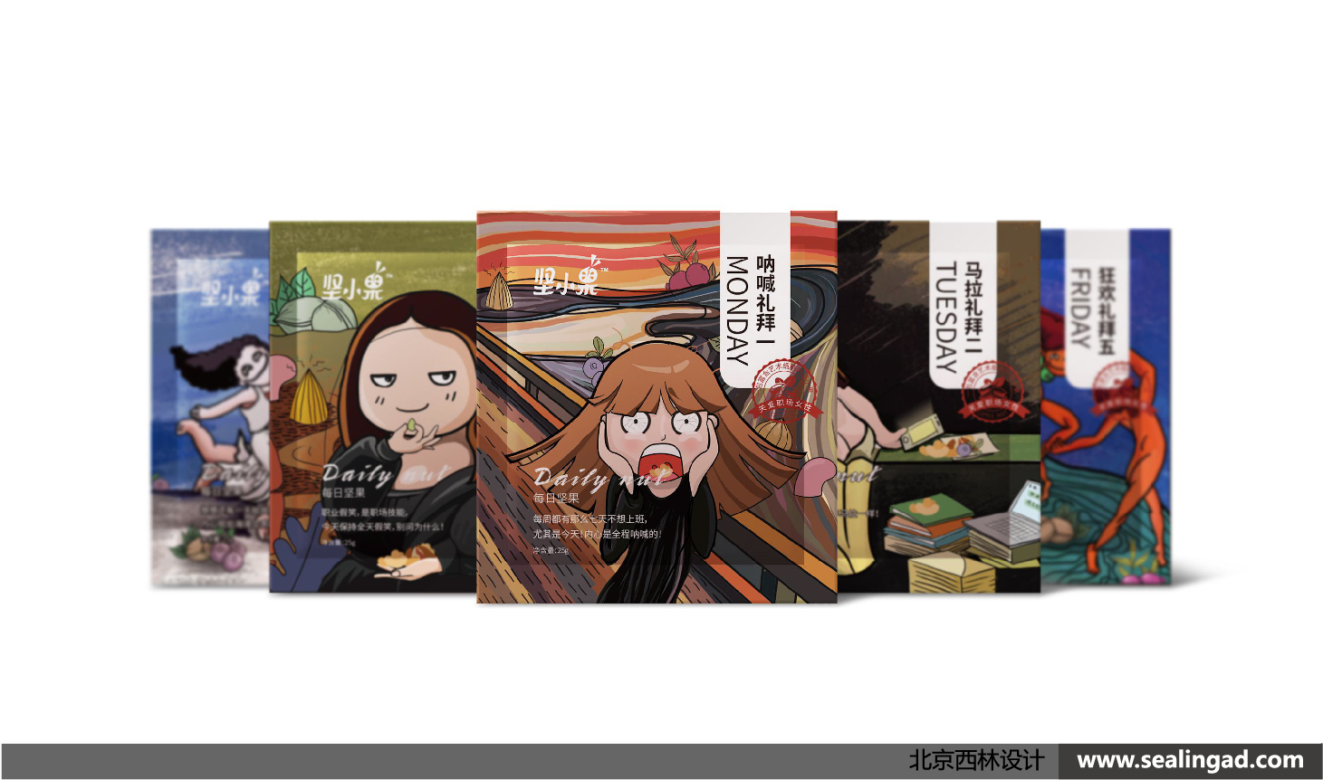 兼顧分享、減壓、補(bǔ)充營養(yǎng)的堅(jiān)小果,就是這么帶感,此系列包裝靈感來源于多副傳世名畫,巧合上班簇們的內(nèi)心世界,打造一款受職場女性喜愛的爆款堅(jiān)果。