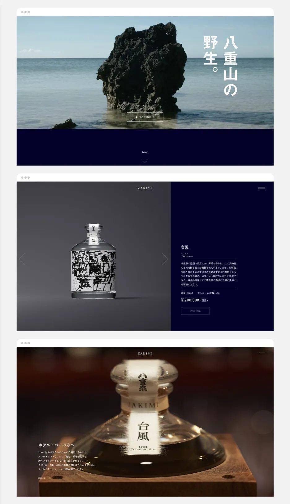 三款酒“ゆく”、“顔”“臺風”