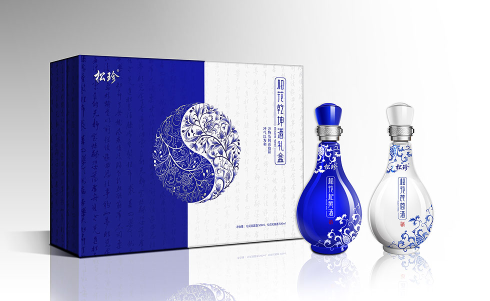 項(xiàng)目背景:“善補(bǔ)陽者,必于陰中求陽,則陽得陰助而生化無窮;善補(bǔ)陰者,必于陽中求陰,則陰得陽生而泉源不竭?!彼苫ㄜ稳鼐啤⑺苫ㄨ近S酒包裝設(shè)計(jì)以太極為基礎(chǔ)概念,考慮融合太極、乾坤理念,單品可以銷售,兩瓶酒相聚亦可形成乾坤禮盒。