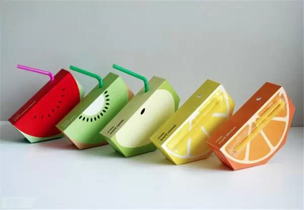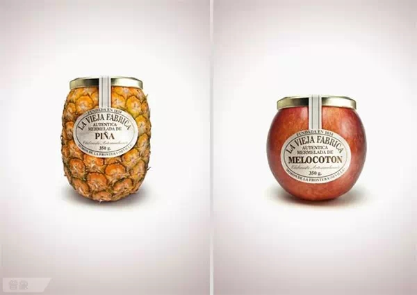 很多包裝中會用到水果元素來設計,特別是在一些水果相關的產(chǎn)品,比如果汁飲品等等。譬如深澤直人的這款仿生“果汁皮”飲料包裝,就像是直接使用了香蕉、草莓、奇異果等的外皮。直觀到一眼便知。