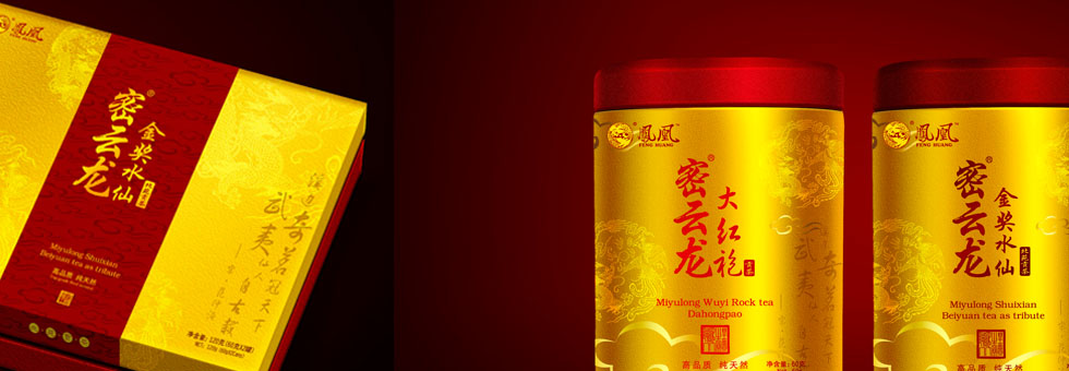 項目背景:紅色與金色的交叉運用,顯示出禮盒喜慶、尊貴的氣質(zhì);中式團型與云型手繪圖案的運用,彰顯了中式古典情懷。鳳凰密云龍茶葉,屬武夷茶中極品,以此精致禮盒襯托,當之無愧。