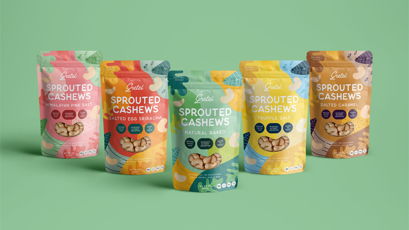 這一系列的包裝是為定制腰果品牌設(shè)計的,是真實的,誠實的和所有的自然。其目的是通過在包裝上使用明亮、充滿活力的自然色,吸引目標觀眾的注意力,從而從貨架和其他競爭對手中脫穎而出。插圖是手工繪制,以提供真實的元素,而顏色是精心挑選和匹配,以提供一個良好的代表口味。