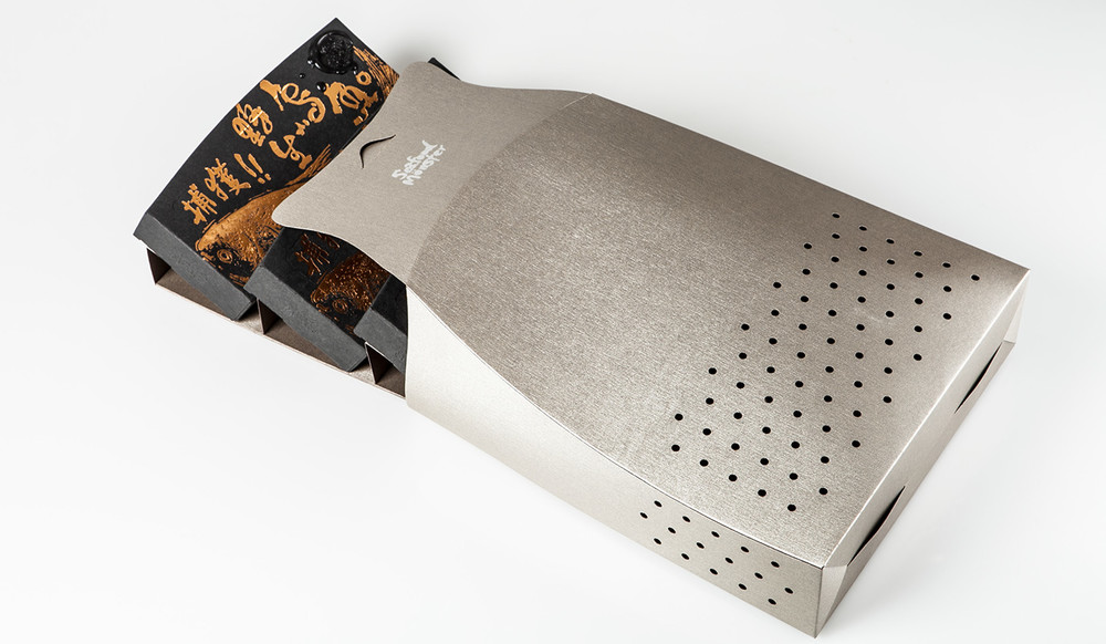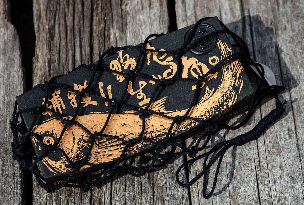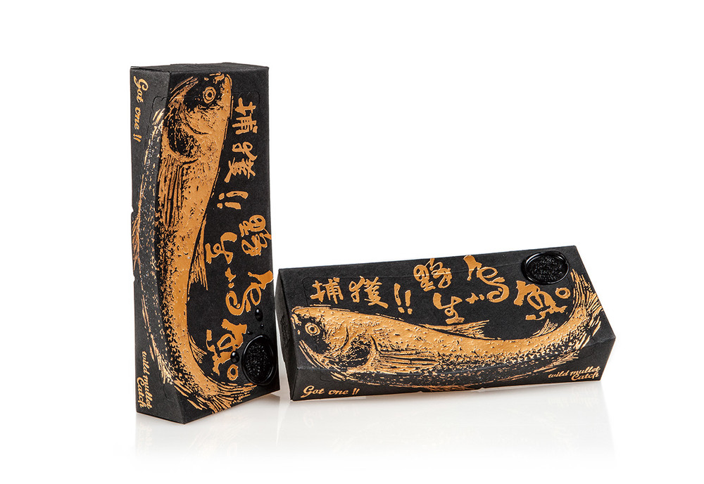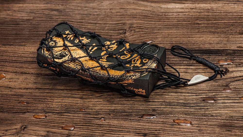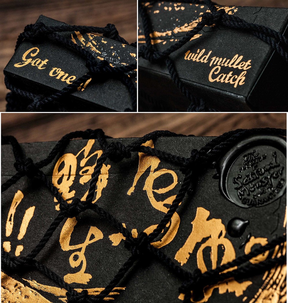 整個(gè)包裝北京設(shè)計(jì)小編認(rèn)為絕對顛覆了對腥味濃重的烏魚包裝的刻板印象,黑色與金色的搭配,火漆印章和漁網(wǎng),讓你分分鐘感受傳統(tǒng)與高端。在色彩上,黑盒做出來的也是再生紙,盒體視覺效果都很有手工打造的感覺,當(dāng)消者使用該產(chǎn)品,并從漁網(wǎng)形狀的盒子中,打開取出產(chǎn)品時(shí),他有一類似于親自體驗(yàn)捕魚的喜悅,此包裝盒的底部設(shè)計(jì)用測量線,以方便烏魚子的切片燒制時(shí),廚師可以自由切割各種尺寸的魚片。野生烏魚,從自然界中獲取,同生互存的概念,循環(huán)及環(huán)保的包裝理念。佳節(jié)伴手禮的好選擇。