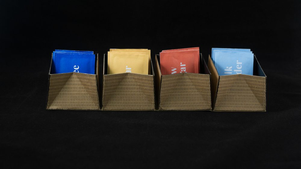 包裝中包含咖啡,白糖,原糖和奶粉,因此可以隨心所欲地對咖啡進行調(diào)味。使用非彩色紙板紙制成的外部保護包裝,Kofea具有很強的手工感。按顏色分開,每個不同的小袋在折紙風格的折疊式包裝中都有自己的“部門”。內(nèi)部折痕在印刷圖案上隱藏了漂亮的細節(jié),而封閉式包裝僅帶有俏皮獨特的襯線徽標。