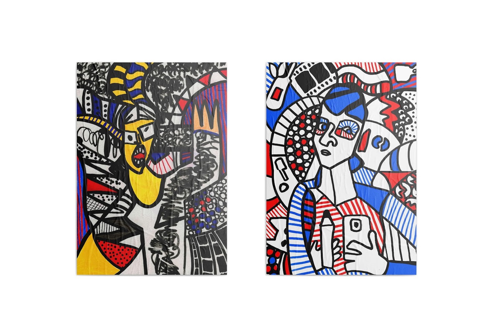 The packaging design is based on a portrait stylized to be Jean Dubuffet and Jean-Michel Basquiat.
