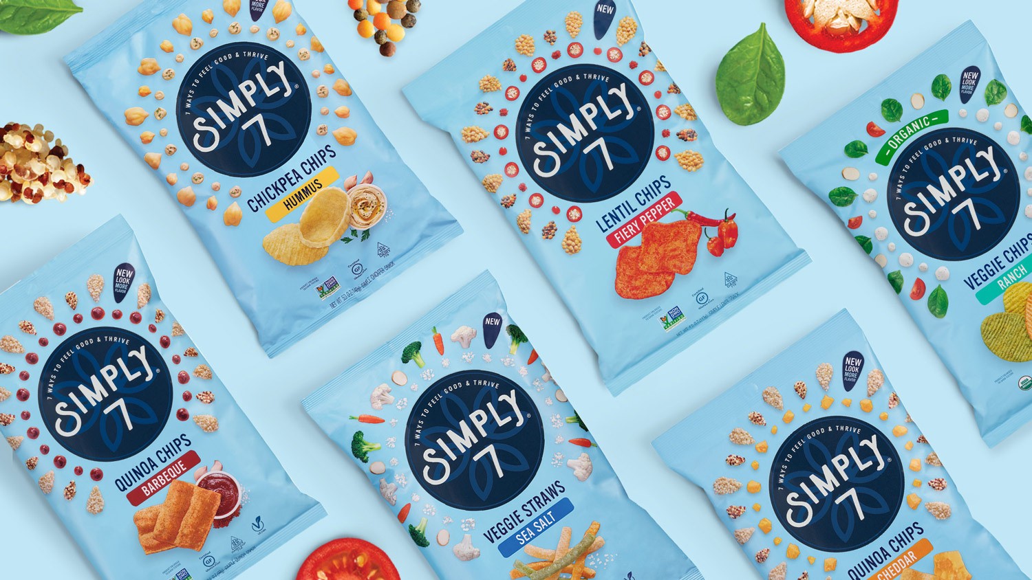 包裝設(shè)計師將Simply 7品牌從陳腐和不景氣轉(zhuǎn)變?yōu)橐粋€能讓零售商和消費者都興奮不已的賣座品牌。新的標(biāo)識通過定制攝影來展現(xiàn)產(chǎn)品健康成分,獨特的品類色彩則在貨架上很流行,bullseye品牌則占據(jù)了中心位置。最后,一個能讓這些小吃有多么美味的設(shè)計(相信我們,我們只是癡迷于此)。