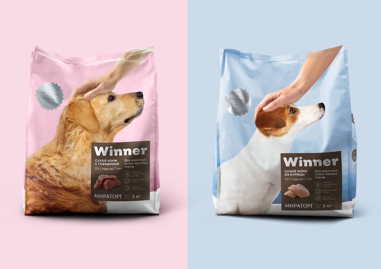通過圖型使包裝更加有靈性,水旺旺的狗狗眼神,還有一只充滿愛的手撫摸,瞬間感受濃濃的愛意。一下子就讓品牌形象更加生動鮮活。不同的圖片區(qū)分,可以很快速的知道產(chǎn)品屬性,清晰明了,設(shè)計版面干凈舒服。
