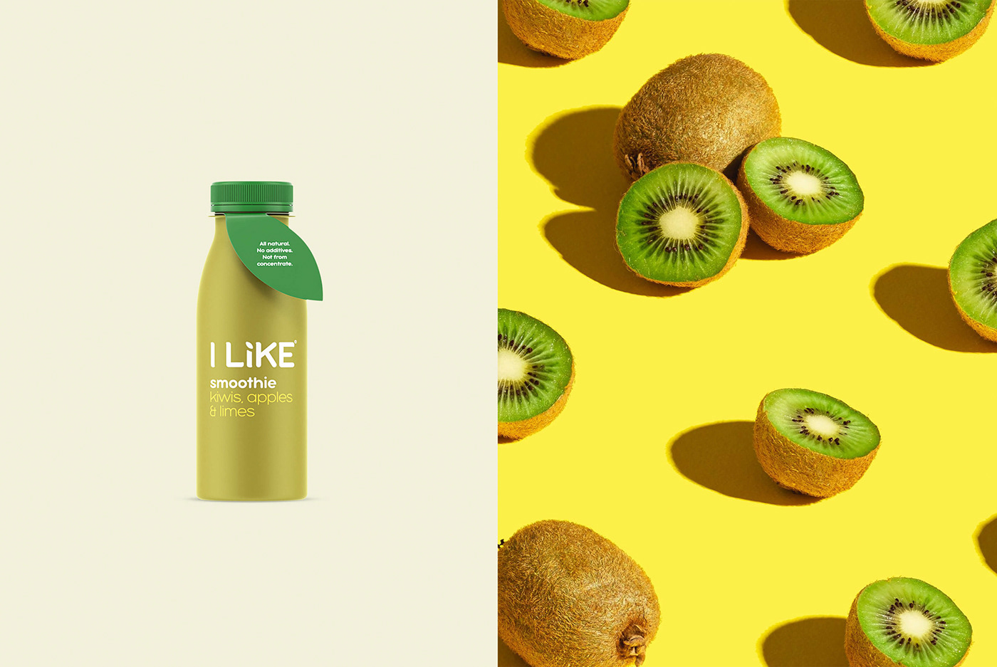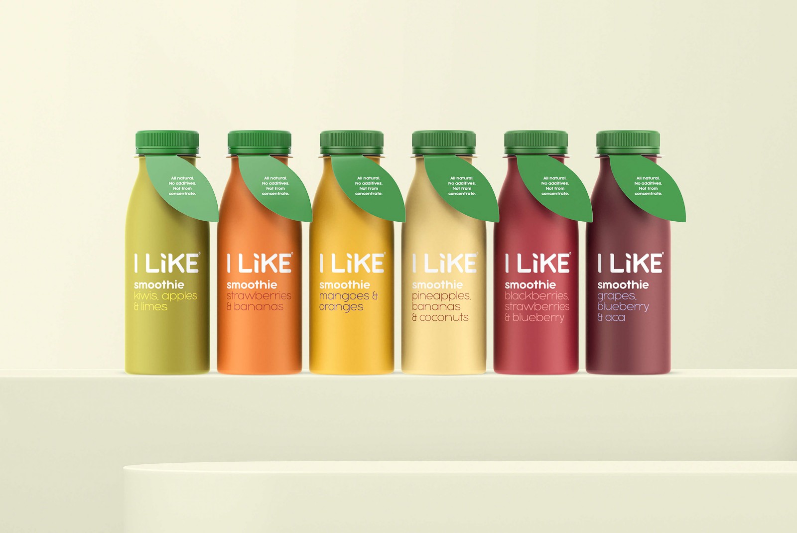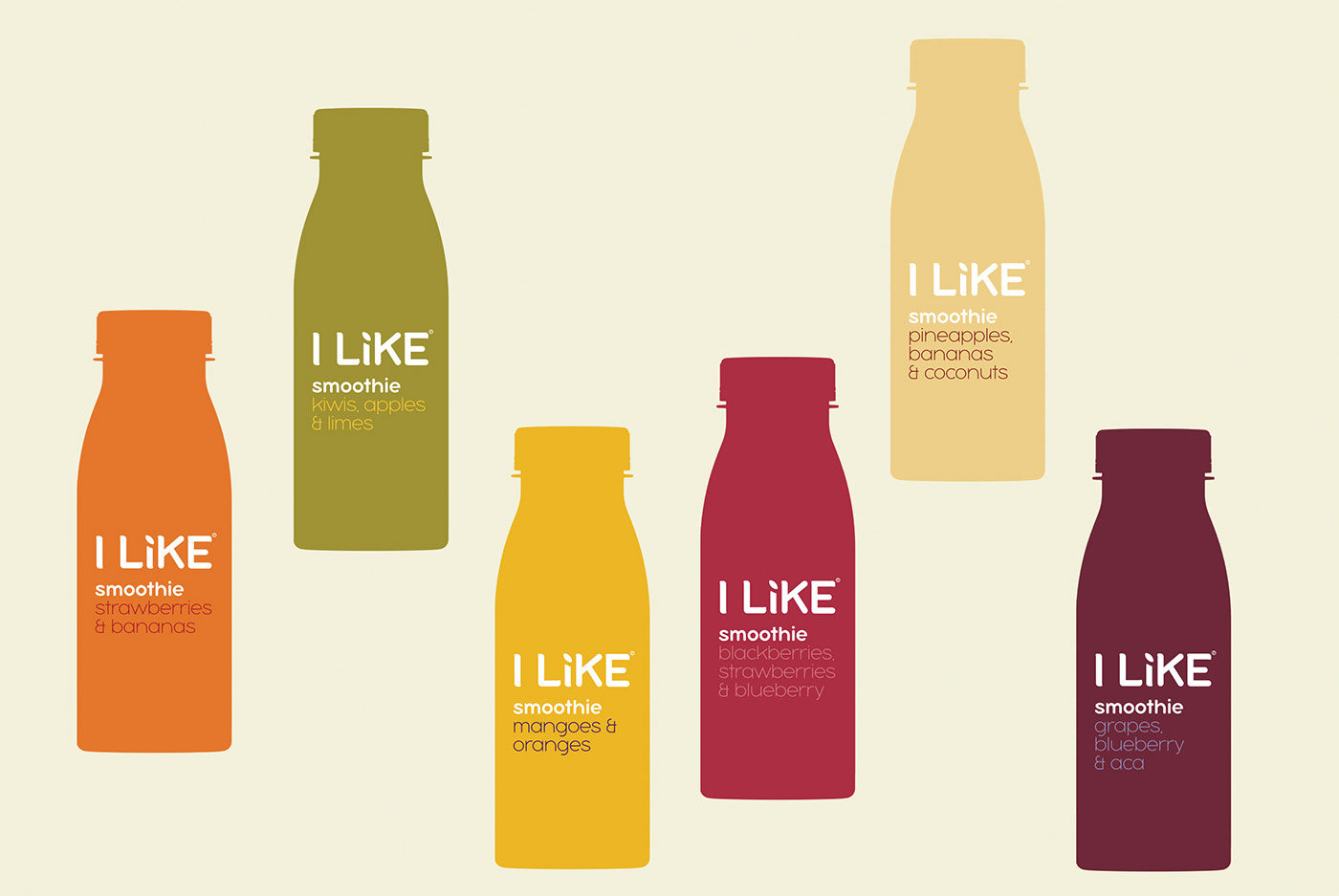 在開(kāi)發(fā)命名時(shí),我們希望在品牌名稱(chēng)和產(chǎn)品類(lèi)型之間建立聯(lián)系。結(jié)果是一個(gè)引人入勝,有趣的宣言-ILIKE /冰沙/葡萄或ILIKE /冰沙/芒果。這對(duì)整個(gè)產(chǎn)品線(xiàn)都適用。在開(kāi)發(fā)包裝樣式的過(guò)程中,我們?cè)噲D最準(zhǔn)確地傳達(dá)產(chǎn)品的自然性,飲料的原始顏色及其成分。結(jié)果是自然的,而不是浮華的啞光陰影。我們還添加了綠色的葉子-一些額外的元素,使包裝具有新鮮收獲的水果的圖像。